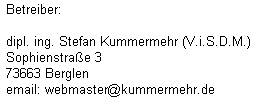 Das Copyright für veröffentlichte, vom Autor selbst erstellte Objekte bleibt allein beim Autor der Seiten. Eine Vervielfältigung oder Verwendung solcher Grafiken, Tondokumente, Videosequenzen und Texte in anderen elektronischen oder gedruckten Publikationen ist ohne ausdrückliche Zustimmung des Autors nicht gestattet.