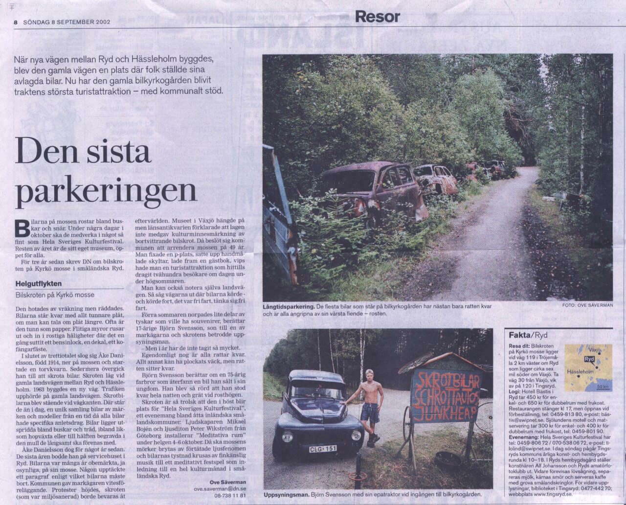 Ein anderer Artikel aus der DN vom 8.September 2002 befaßt sich mit der Wandlung eines verlassenen Schrottplatzes zur großen touristischen Hoffnung: Den_sista_parkeringen.jpg (360 kb)